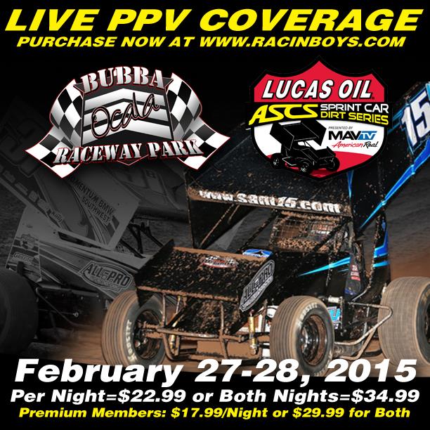 Inside Line Promotions – KANSAS CITY, Mo. (Feb. 7, 2015) – RacinBoys is offering live Pay-Per-View video of the Lucas Oil ASCS National Tour doubleheader at Bubba Raceway Park later this month.