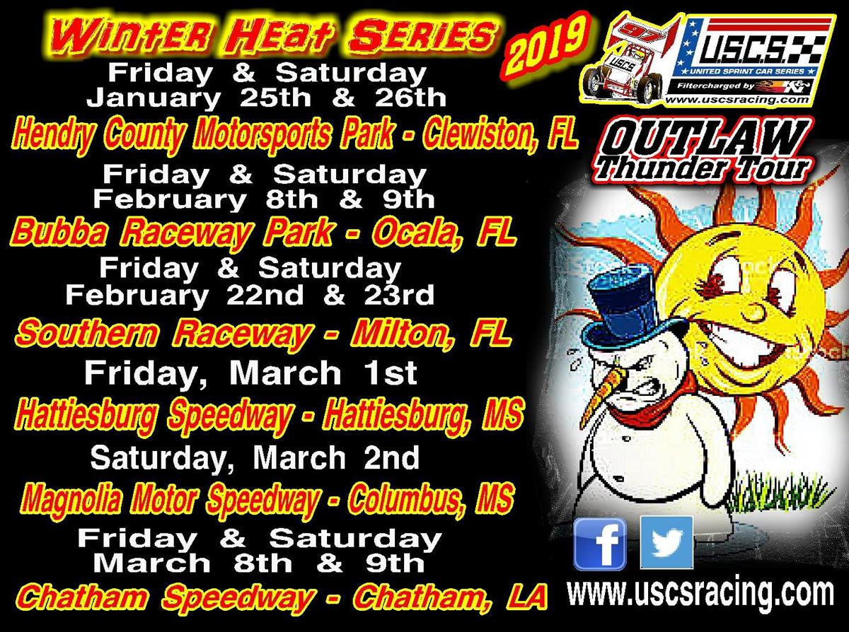Inside Line Promotions – MAPLE GROVE, Minn. (Jan. 4, 2019) – Winter is about to heat up as the United Sprint Car Series presented by K&N Filters ventures south for a 10-race spectacle.